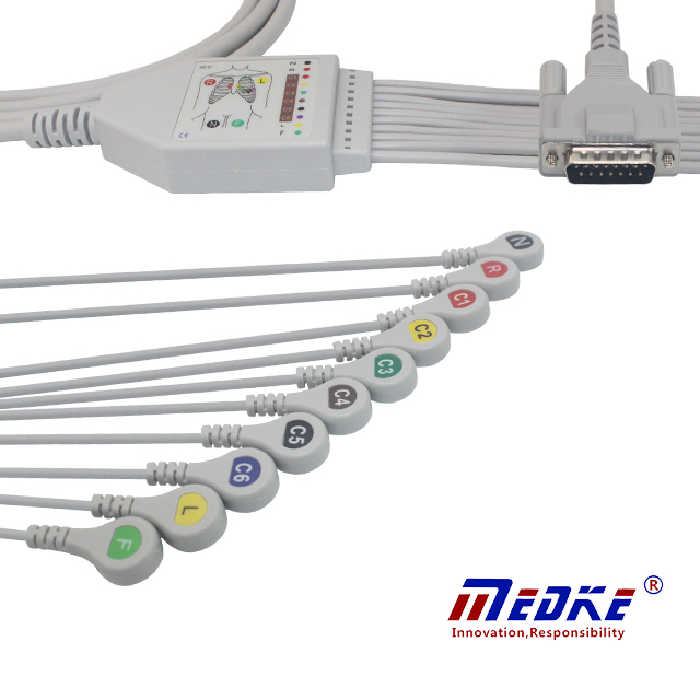 One piece Schiller 10-Lead Shielded EKG Cable IEC Fixed Snap